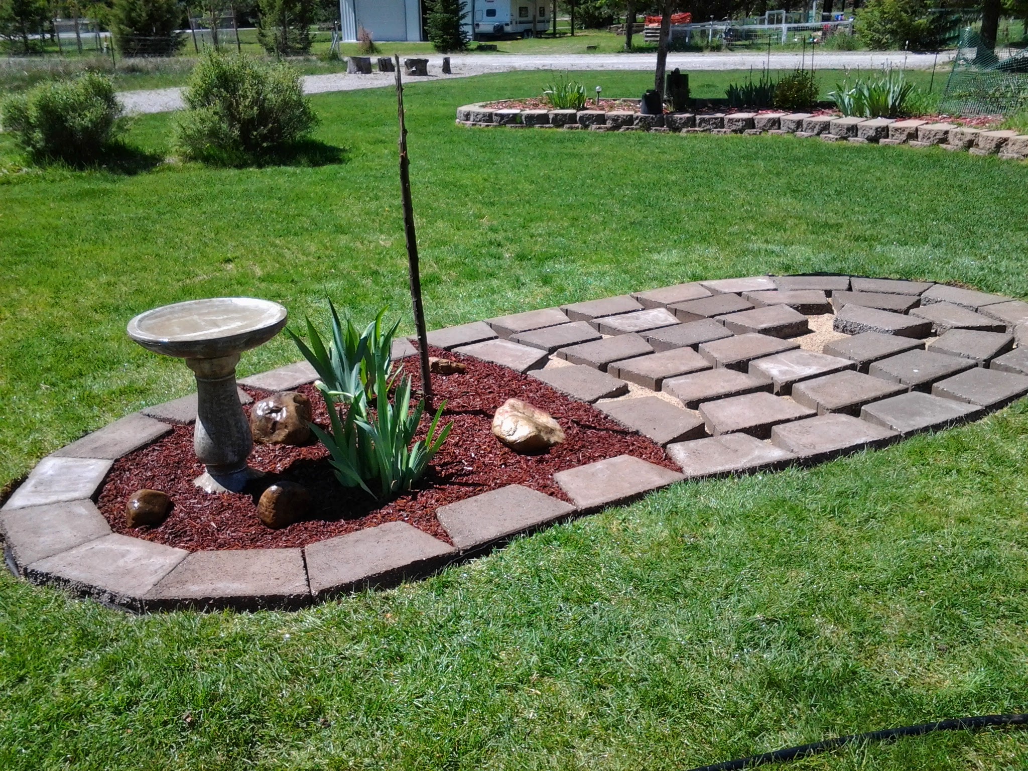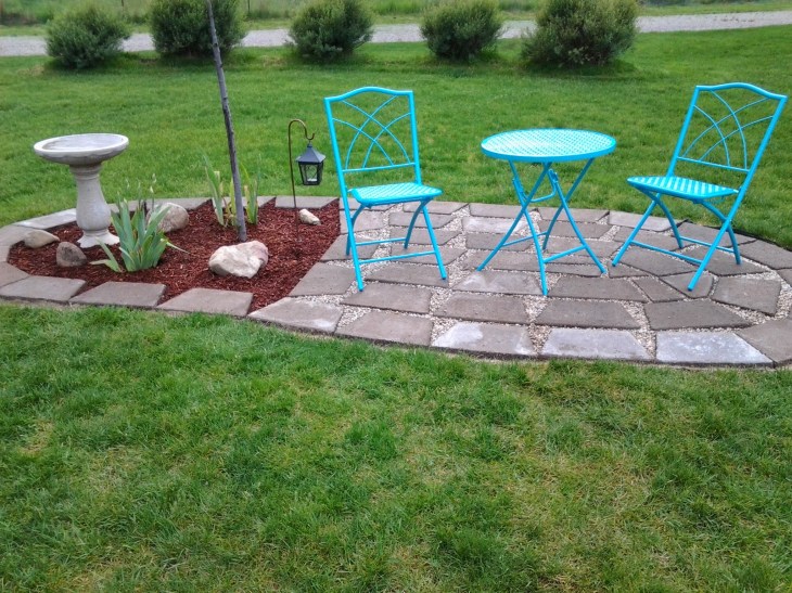 Planted a few irises and a young tree. A couple large stones and a bird bath to finish. The table and chairs were from Fred Meyer. It turned out to be an awesome small seating area to view the yard and enjoy the peace and quiet.